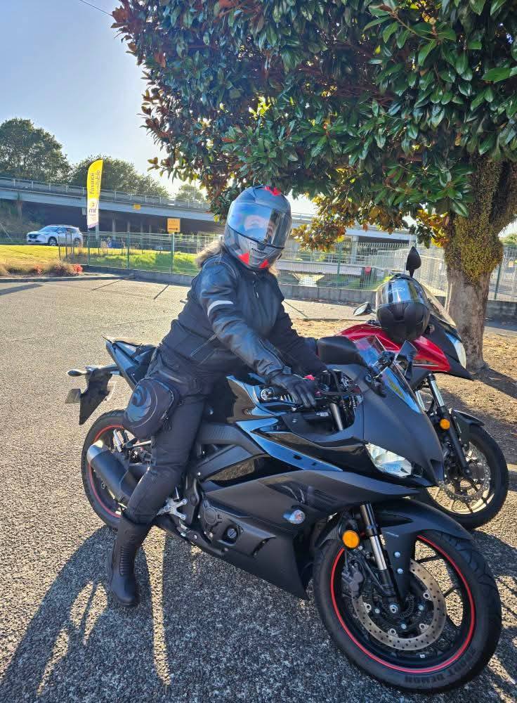 Jason bought me a scooter to practise on. I completed my Basic Handling and soon after bought my first bike – a Yamaha R3. Jason insisted on ABS and all the safety features. He lowered it for me and we customised it together. It became ours.